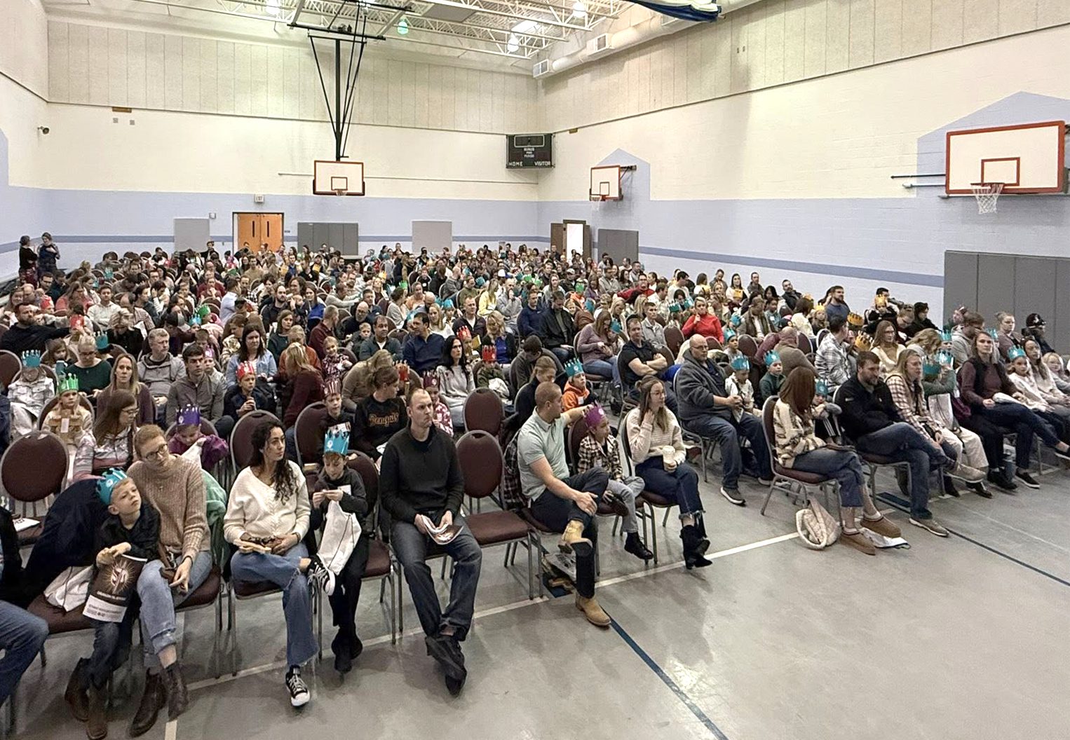 The full-size gym with a stage can be used as a large meeting space