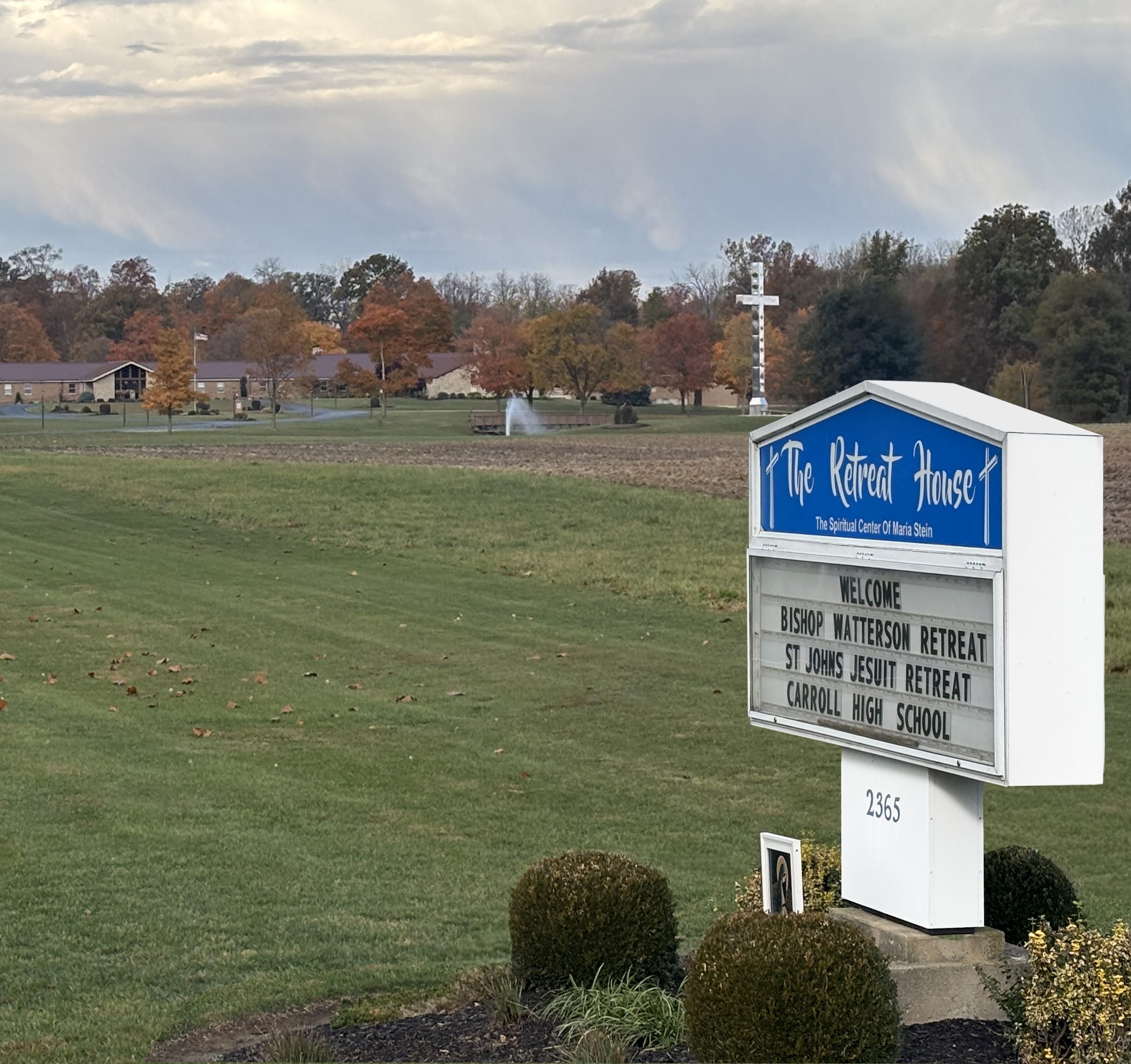 Take I-75 South to St. Rt. 274 West. Continue about 17 miles through New Bremen to St. Johns Road. Turn South. The Maria Stein Retreat Center is on the right side of the road. Look for the big cross and “the Retreat House” sign.