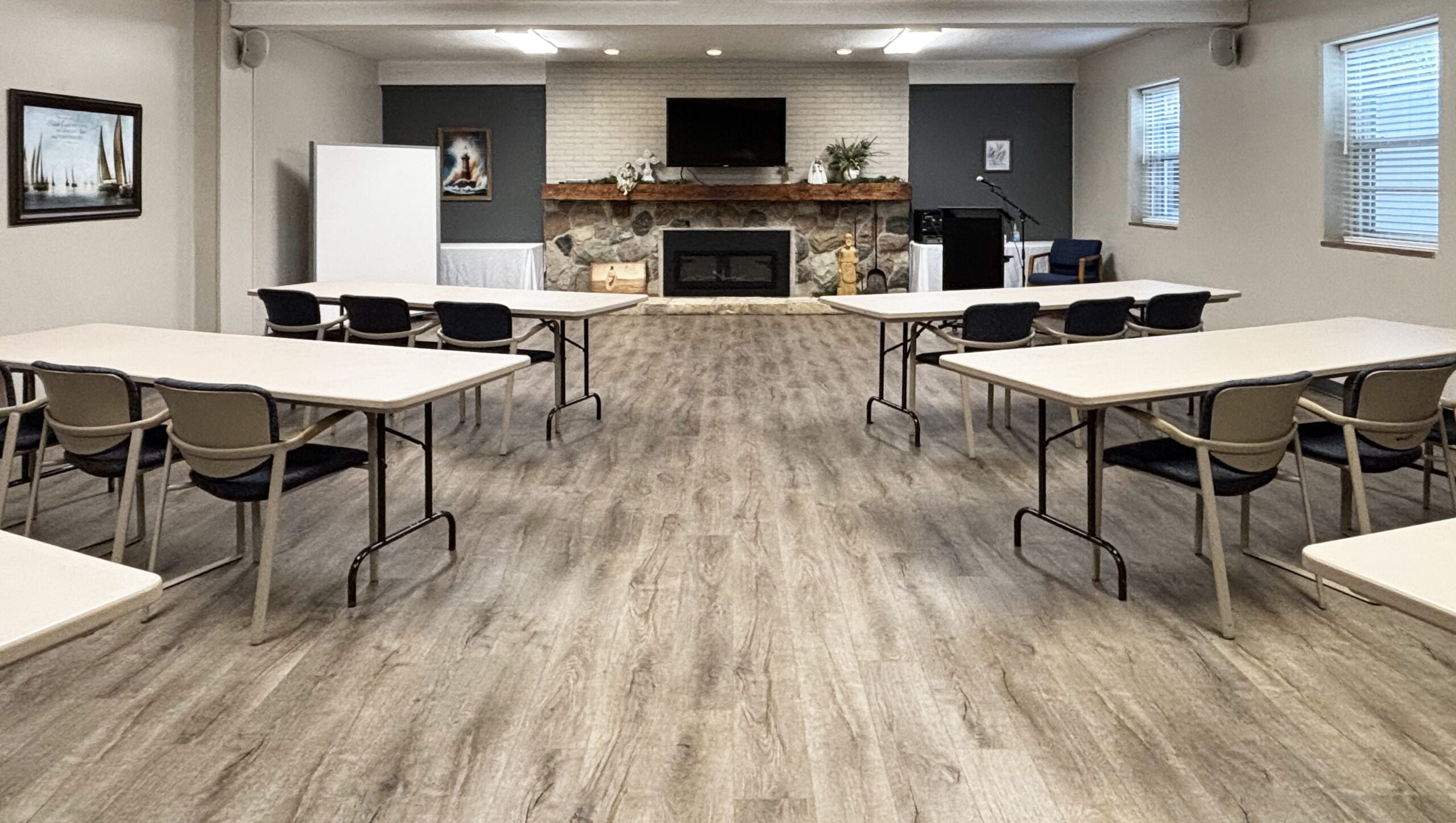 The large meeting rooms are outfitted with 55″-60″ Smart TVs with HDMI cables provided